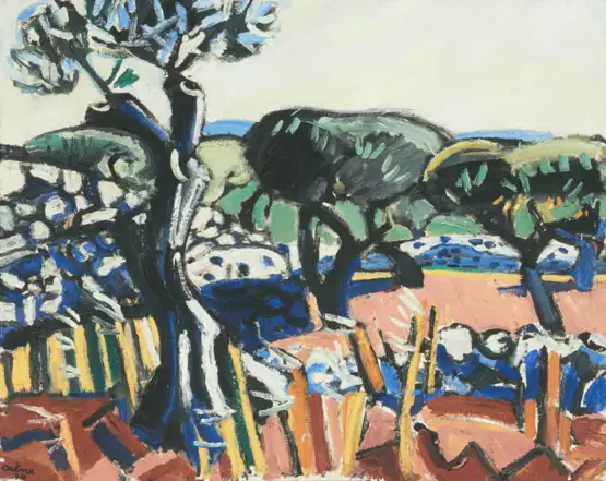 Landschaft in Südfrankreich. 1970. Öl auf Leinwand. Unten links signiert und datiert. 73,5x92 cm. Gerahmt.