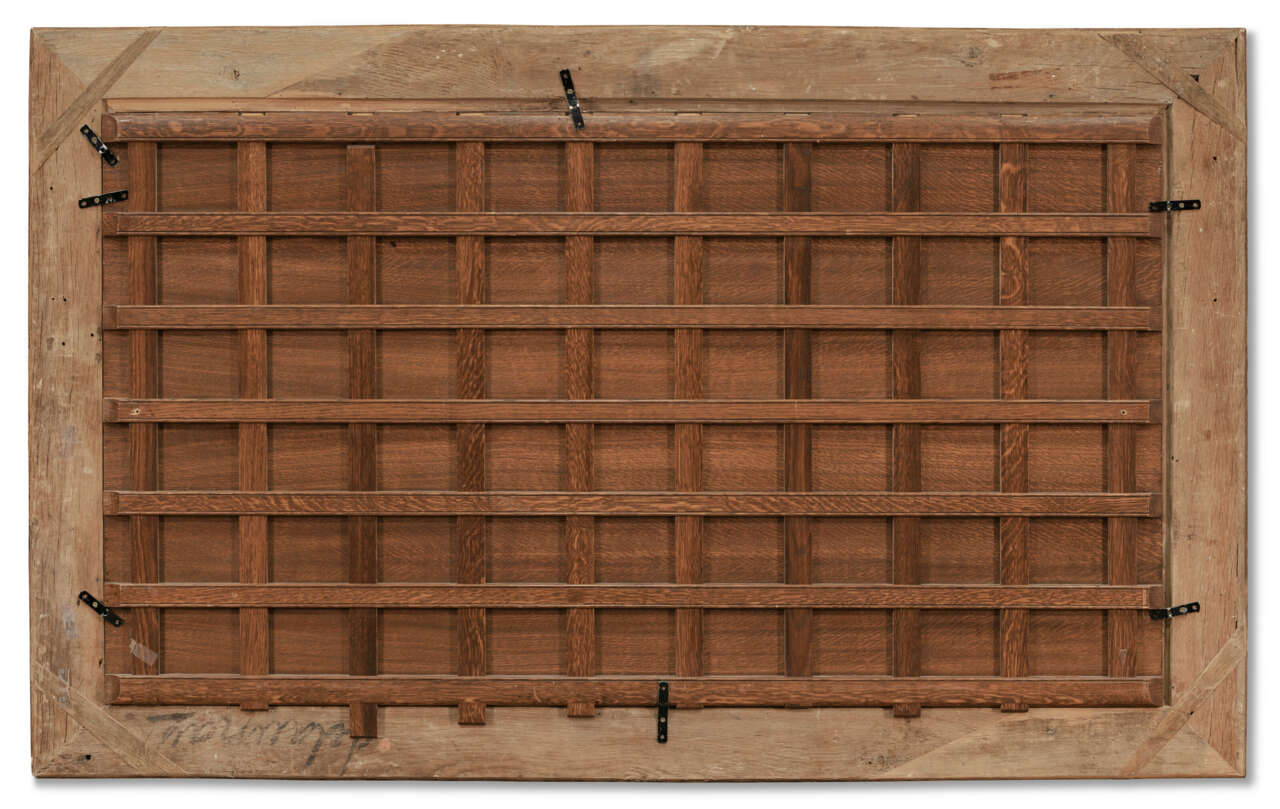 huile sur panneau, dessus de clavecin mis au rectangle