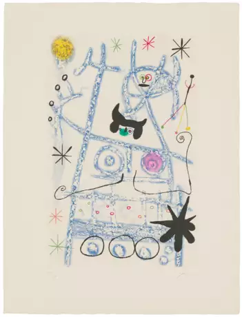 aquatint in colours, 1958, on BFK Rives wove paper, signed in pencil, numbered 64/75 (there were also a few hors commerce impressions), published by Maeght Éditeur, Paris