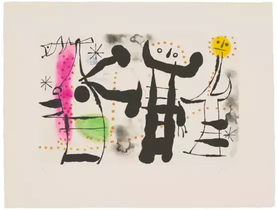 aquatint in colours, 1958, on BFK Rives wove paper, signed in pencil, numbered 63/75 (there were also a few hors commerce impressions), published by Maeght Éditeur, Paris