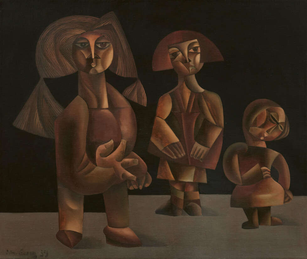 Notation: Signed and dated lower left: Joh. Georg 59. Signed and dated again verso. Also dedicated here. Titled twice on the stretcher: 'Kinder wie Katzen' and 'Kinder wie Katzen wie Marionetten wie Puppen'.