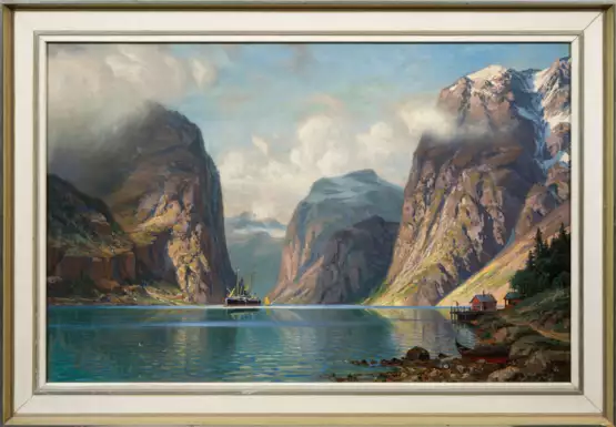 Charakteristisches, atmosphärisch gestimmtes Werk Harders, der an der Düsseldorfer Akademie ausgebildet wurde und sich neben Hamburger Hafen- und Stadtansichten überwiegend auf Marinemalerei spezialisierte. Öl/Lwd.; R. u. sign. 65 cm x 95,5 cm. Rahmen.