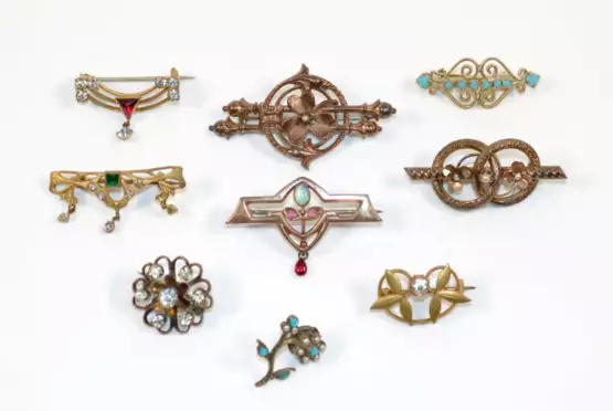 Double Schmuck meist mit Steinbesatz. Pforzheim um 1900-10. Insges. 9 tlg.