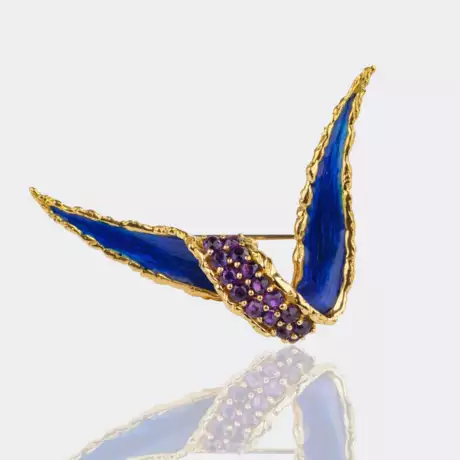 Los 36 | Juwelier Wilm. Vintage Emaille Amethyst Brosche.