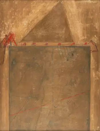 Die gut erhaltene Arbeit zur Katalogisierung nicht ausgerahmt. Blattkanten und -Ecken des Kartons minimal berieben, dort mit vereinzelten winzigen Farbabplatzungen. Untere Kante stellenweise mit kaum merklichen Risschen in der Farbschicht.