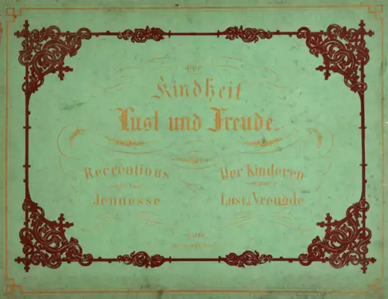 Nicht bei Klotz, selten. - Ohne Titelbl. u. Text (so kompl. ?). Deckeltitel dreisprachig dt., franz., holländ. Unter den Motiven Schneeballschlacht, Bockspringen, Beim Wippen, Spiele auf dem Bauernhof. - Ränder tls. etw. fleckig, einige kl. Randläs., 1 Tafel mit repar. Einriß, vord. Vors. beschäd.