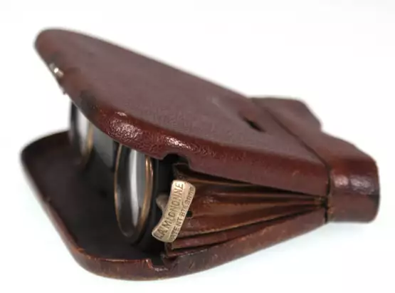 Los 594 | Klapp-Opernglas "La Mignonne", Frankreich um 1900, in Leder gefasst, patentiert, Gebrauchspuren, 4,5x11,5x8 cm