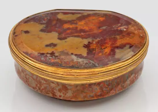 A small German agate snuff box with gold-plated copper mounting.