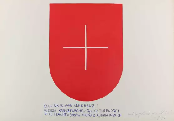 Fuck Your-Self!. Blgr. 75 x 50 cm. - Ex. 21 von 100. - 5 Schweizer Franken. Blgr. 50 x 70 cm.- Ex. 11 von 11. - "Kulturschweizerkreuz!...". - Ex. 16 von 30 Ex. - Tls. leichte Alterssp.
