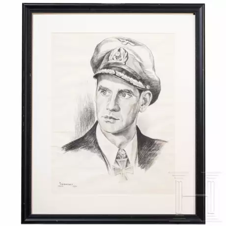 Los 4594 | Kohlezeichnung (Portrait) eines Eichenlaubträgers der Kriegsmarine von R. Liebhart