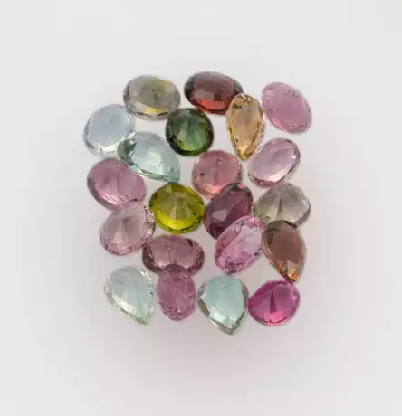 Ungefasst. 21 bunte Turmaline von zus ca. 25,80 ct. im Oval- und Tropfenschliff.