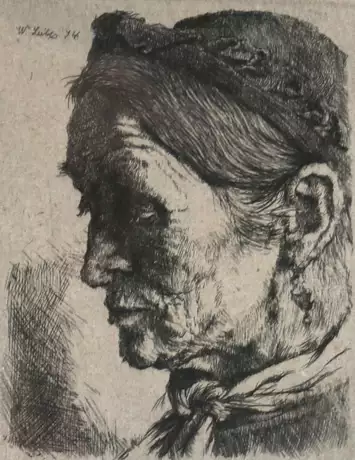 Dabei: Derselbe. : (1844 Köln - Würzburg 1900). Bauernbursche mit Krug. Radierung. Um 1896. Ca. 15,5 x 10 cm. Auf Passep. hs. zugeschr. Unt. Passep. u. Glas gerahmt. - Gronau 15. - Leicht gebr. Vereinz. fl.