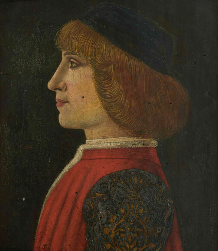 Bildnis eines Jünglings im Profil. Öl auf Leinwand auf Holz. 26x22,3 cm. Gerahmt.