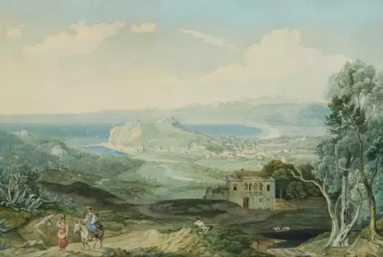 Los 1922 | Maler des 19. Jh. ''Italienische Landschaft'', Blick auf die Bucht mit…