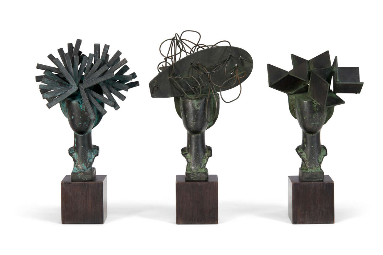 the complete set of three bronze multiples, on wooden base, 2006, with the artist's incised initials, numbered 26/150, published by Art Witness, Boza Editor, Madrid, each in very good condition