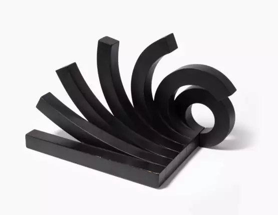 Sviluppo elastico. Holz, schwarz lackiert. Auf dem Boden auf Etikett betitelt, signiert und nummeriert: "7-50". H 24 cm.