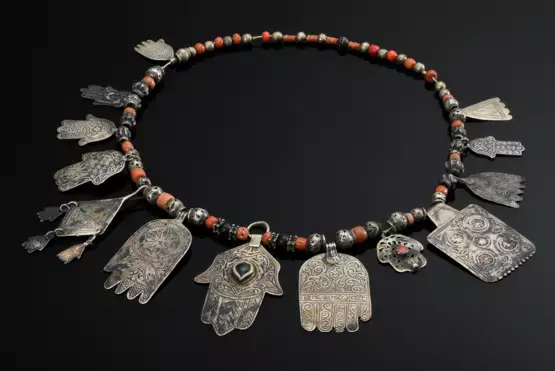 Los 1474 | Marokkanische Kette mit diversen Silber-, Korallen…
