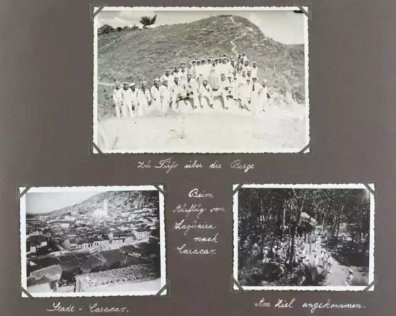 Vgl. das Exemplar einer früheren Reise (24.5. - 12.12.1930) im Internationalen Maritimen Museum in Hamburg ID 58960. - Die hier dokumentierte Weltreise des Kreuzers führte von Kiel über den Atlantischen Ozean nach Kuba und durch den Golf von Mexiko nach Hawai, Kanada, die Ostküste der USA, umrundete Süd-Amerika und über New York zurück nach Kiel. Mit interessanten Aufnahmen aus Teneriffa, Havanna, Königin Lili'uokalani von Hawai (1838-1917), "Hawai-Girls in ihrer Tracht", Los Angeles und Hollywood, Peru, Zeppelin-Luftschiffe u.v.m. - Der Kreuzer "Karlsruhe", das zweite Kriegsschiff der Königsberg-Klasse der Reichsmarine der Weimarer Republik, lief am 20. August 1927 in Kiel vom Stapel. "Es wurde auf den Namen Karlsruhe getauft. Die Taufrede hielt der Karlsruher Oberbürgermeister Finter, während der eigentliche Taufakt von Frau Köhler, der Witwe des am 4. November 1914 gefallenen Kommandanten der Karlsruhe, Fregattenkapitän Erich Köhler, vollzogen wurde. Mit der Überführungsfahrt von Kiel nach Wilhelmshaven am 15. Oktober 1929 unter Werftflagge wurden die Werftprobefahrten abgeschlossen. Die Indienststellung der Karlsruhe erfolgte am 6. November 1929 in Wilhelmshaven unter dem Kommando von Fregattenkapitän Lindau. . Der Kreuzer wurde von Mai 1930 bis Juni 1936 für die Inspektion des Bildungswesens der Marine fast ausschließlich als Schulschiff für Offizieranwärter auf fünf ausgedehnten Reisen durch alle Weltmeere eingesetzt. . Mit einer neuen und noch unzureichend ausgebildeten Besatzung nahm das Schiff dann im April 1940 am Unternehmen Weserübung teil. Unter dem Kommando von Kapitän zur See Rieve hatte der Kreuzer die Aufgabe, die Landung deutscher Truppen in Kristiansand zu sichern. Auf dem Rückmarsch im Skagerrak gelang am 9. April gegen 19.58 Uhr dem britischen U-Boot Truant ein Torpedotreffer, der beide Maschinen und die elektrische Anlage, das Ruder und die Lenzmittel außer Betrieb setzte und 13 Mann der Besatzung tötete. Das Schiff zeigte sehr schnell Schlagseite und begann zu sinken. Gegen 21.00 Uhr stieg die Besatzung auf die Torpedoboote Luchs und Seeadler über. Als das Schiff bis zur Schanz weggesackt war, gab Kapitän Rieve dem Torpedoboot Greif den Befehl, den Kreuzer durch Torpedoschuss zu versenken. Sodann trafen um 22.50 Uhr zwei Torpedos der Greif die Karlsruhe, welche nahe Kristiansand sank" (Wikipedia). - Sehr gut erhalten und vollständig.