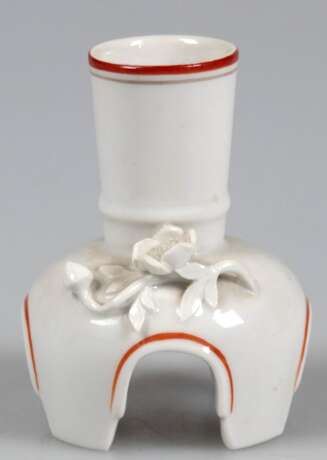 Los 313 | Meissen-Leuchter, 1-kerzig, mit korallenrotem Rand, mit plastischen Blüten besetzt, 1. Wahl, H. 7 cm