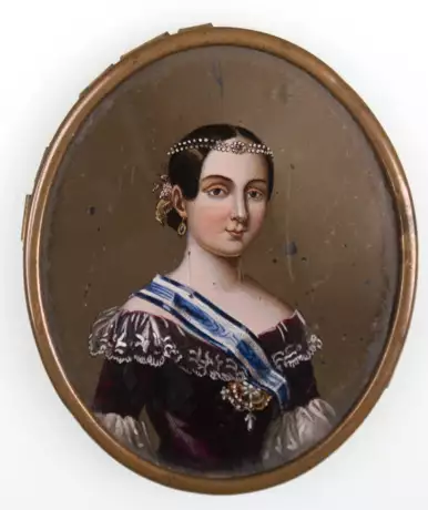 Los 653 | Miniatur, oval, um 1900, mit gedrucktem Porträt der Königin Victoria von Großbritannien und Irland, 6,3x5,2 cm