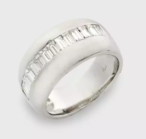 Weißgold, gest. 750. Linear besetzt mit Diamant-Baguetten von zus. ca. 1,40 ct. (G-H/vs). Gew. ca. 13,57 g.