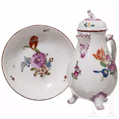 A porcelain moccha coffee pot and a small bowl (saucer), Ludwigsburg, 1758 - 1824