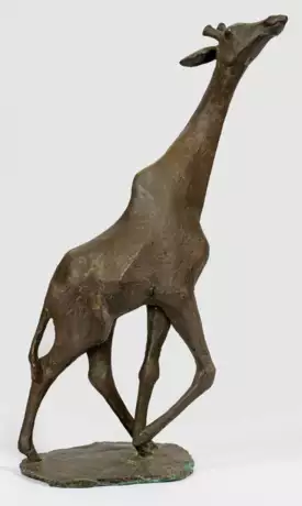 Bronze, braun patiniert. Sign. mit Monogr. "SO". Naturalistische Darstellung der im Bewegungsmoment gezeigten Giraffe mit leicht gewundenem Hals und aufrecht stehendem Haupt. Der Bildhauer studierte an der Münchner Akademie der Bildenden Künste u.a. bei Karl Killer, Fritz Behn und Josef Wackerle. Seine Werke wurden regelmäßig auf der Großen Deutschen Kunstausstellung in München gezeigt.
