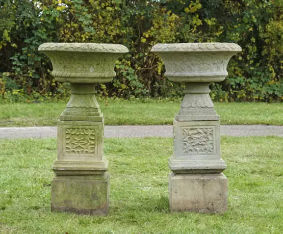 Los 2930 | Paar Parkvasen auf Podestsockeln