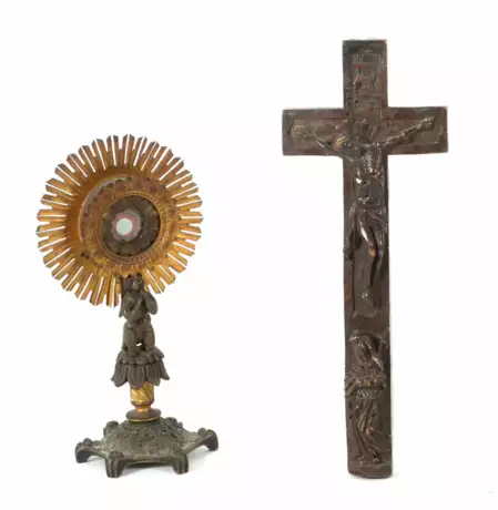 Los 1706 | Paar Reliquiare wohl Süddeutschland, 19. Jh., 1x Reliquienkreuz aus Ho…