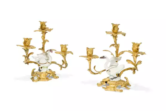 PAIRE DE CANDÉLABRES AUX CYGNES D'ÉPOQUE LOUIS XV