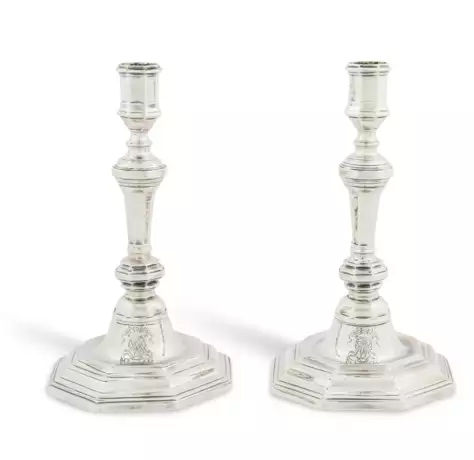 PAIRE DE FLAMBEAUX EN ARGENT D'ÉPOQUE LOUIS XV