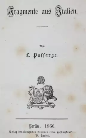 Tresoldi 218. Erste Ausgabe. - Vom Comer See über Florenz, Rom, Neapel, Capri u. Pompeji zurück nach Venedig. Im Anhang armenische Volkslieder, die Ludwig Passarge (1825-1912) aus armenischen Manuskripten in der Bibliothek von San Lazzaro bei Venedig gesammelt hat. - Tls. leicht stockfleckig.