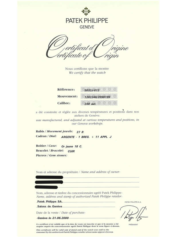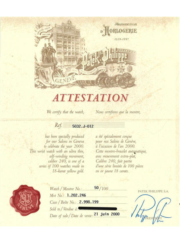 With: 18k gold Patek Philippe buckle, Patek Philippe Certificate of Origin, Patek Philippe Attestation, presentation box and outer packaging