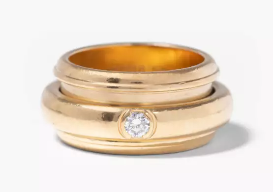 Italien 1993. 750 Gelbgold. Modell "Possession", signiert und nummeriert. Ein beweglicher Ring mit einem Brillanten von 0.12 ct auf einem Bandring mit rundem Abschluss. Gr. 54, 19 g.