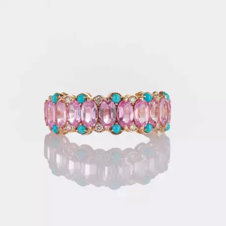 Los 118 | Pink Saphir Ring mit kleinen Türkisen.