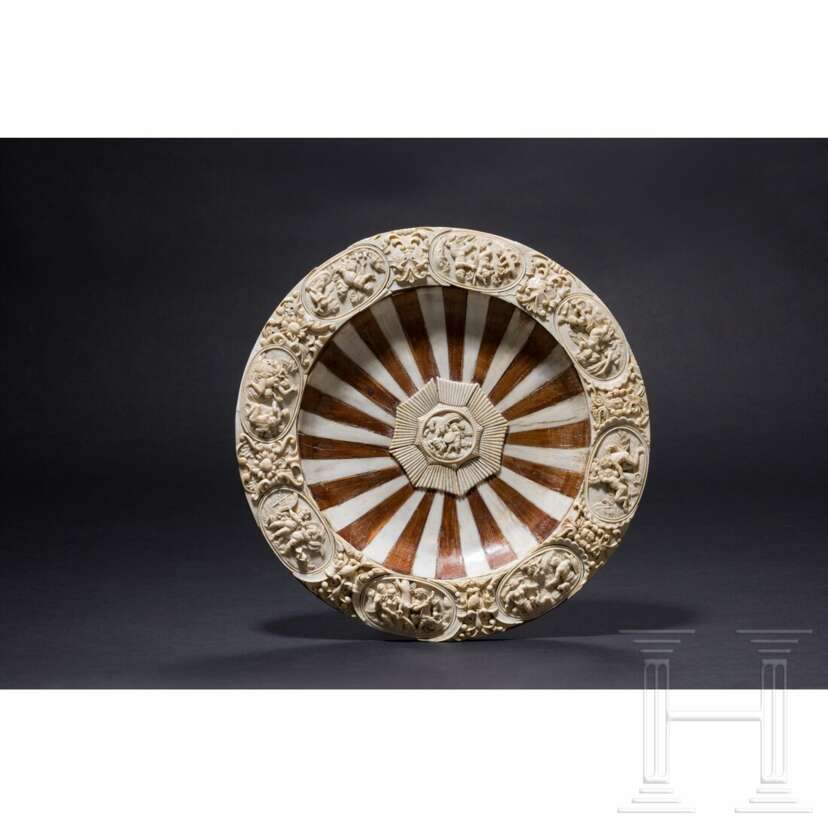 Los 381 | Prunkvoller Schauteller aus Horn und Elfenbein, Erbach, Otto Glenz, Ende 19. Jhdt.