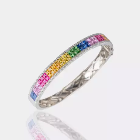 Los 184 | Rainbow Armreif mit farbigen Saphiren, Rubinen und Brillanten.