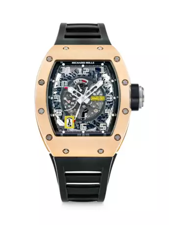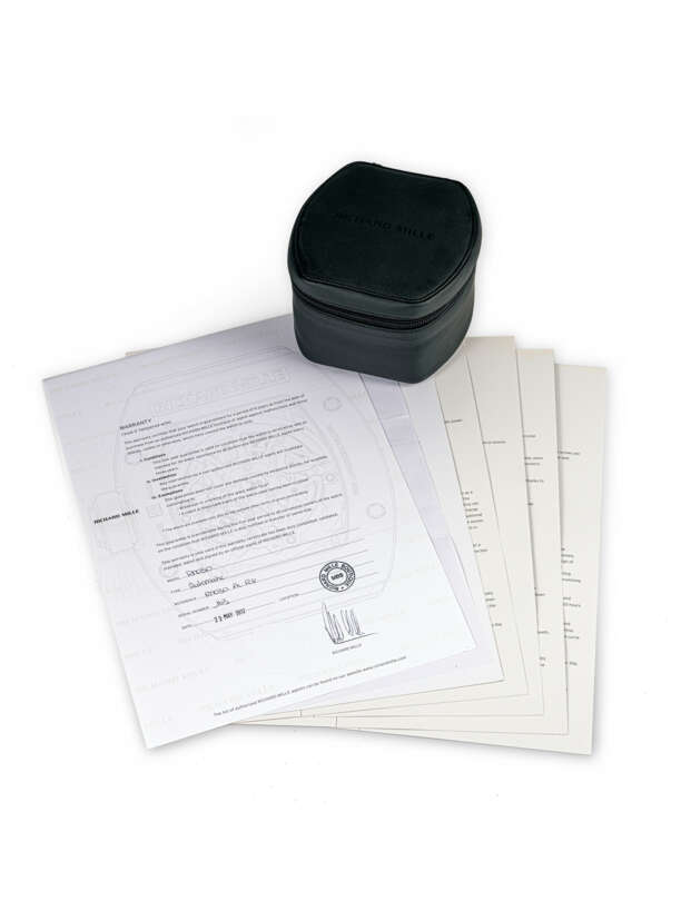 With: 18k pink gold and titanium Richard Mille deployant clasp, Richard Mille Warranty, Richard Mille service invoice from September 2017, product literature and travel pouch
