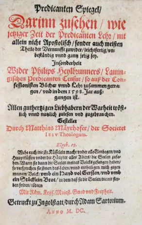 I. VD 16, R 3125. Erste Ausgabe. II. de Backer-S. V, 367, 10. Gegen Heilbrunner gerichtete Schrift. III. VD 16, H 542. IV. VD 17, 12:113524-W. Seltene gegenreformatorische Schrift. - Tls. etw. wasserrandig u. leichte Gebrauchssspuren. - Exlibris eines Kapuziner-Klosters.