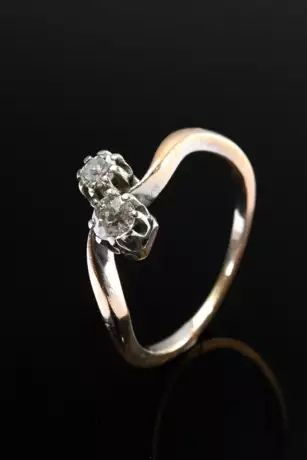 Rotgold 585 „Toi et moi“ Ring mit Altschliffdiamant und Brillant (zus. ca. 0.23ct/P1/TCR), 2,4g, Gr. 54