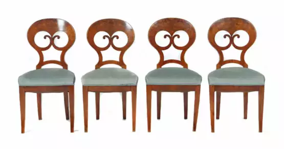 Los 437 | Satz aus vier Biedermeier-Stühlen 2. Viertel 19. Jh., Nussbaummaser fu…