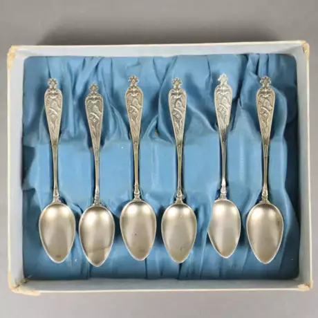 Los 143 | Satz von sechs Mokkalöffeln - 800er Silber, spitzo…
