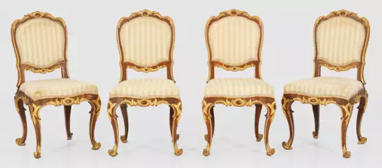 A set of four Swabia carved and partly gilt walnut Rococo chairs.