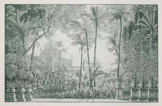 (1781 Neuruppin - Berlin 1841) nach. Aquatintaradierung. Aus "Dekorationen zu Opern und Schauspielen". Blatt "Nurmahal". Qu.Fol. - Vgl. Börsch-Supan 228.