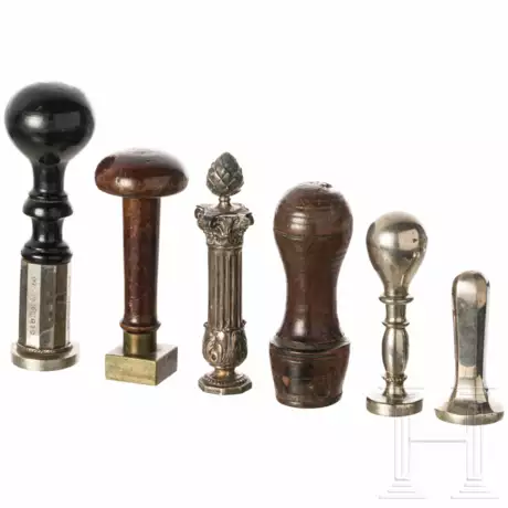 Los 7375 | Sechs Petschafte, darunter zwei persönliche Siegelstempel des Leibartztes von König Max Joseph I., Bernhard Josef von Hartz, deutsch, 19./20. Jhdt.