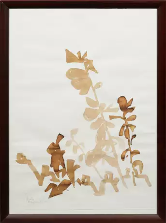 Gestisch abstrahierte, in Form und Farbe stark reduzierte Arbeit Sprottes, der inspiriert von der nordfriesischen Landschaft vornehmlich Strand- und Wellenmotive schuf. Aquarell/Fabriano Ingres Papier (Wasserzeichen). L. u. sign. mit Ortsangabe Kampen und dat. 5.9.(19)74. 66,7 cm x 48,2 cm. Rahmen.
