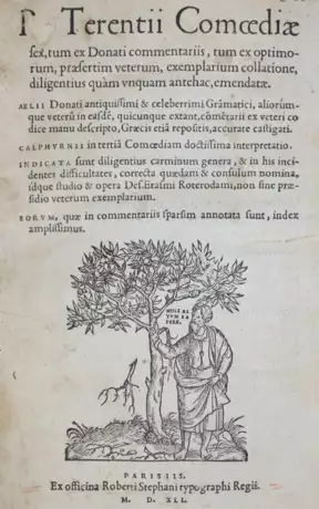 Adams, T 333. Schreiber 67. - Estienne-Nachdruck der Erasmus-Ausgabe Basel 1532. - Ohne das w. Bl. am Schluß. Bibl.-Ex. Etw. wasserrandig, zahlr. Marginalien u. Unterstr., hs. Eintr. a.T.