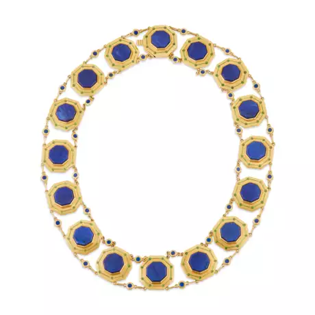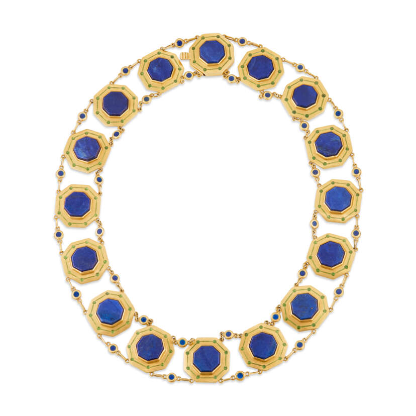 Los 121 | TIFFANY & CO., LOUIS COMFORT TIFFANY LAPIS LAZULI, ENAMEL AND GOLD NECKLACE