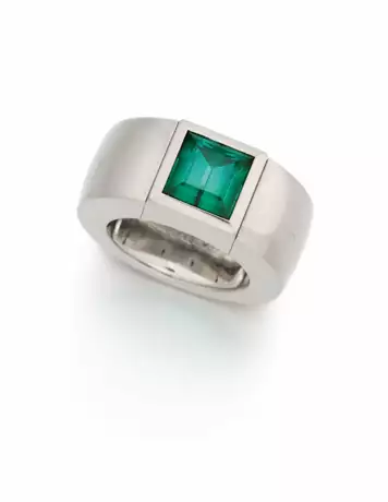 Gemstones: 1 green blue tourmaline in carré-cut ca. 6,5 ct.