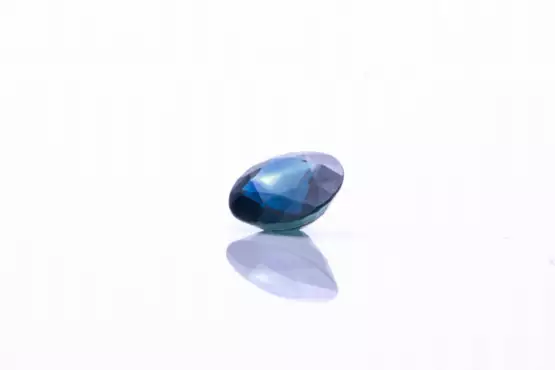 2,475 ct, 8,36 - 8,44 mm x 4,44 mm, im Brillant-Schliff, bicolor dunkelblau/gelb, transparent mit sehr kleinen Einschlüssen, transparente Farbzonierung in der Mitte, zum Rand hin gelb werdend, Zertifikat des Gemmologischen Labors Austria vom Mai 2024 anbei